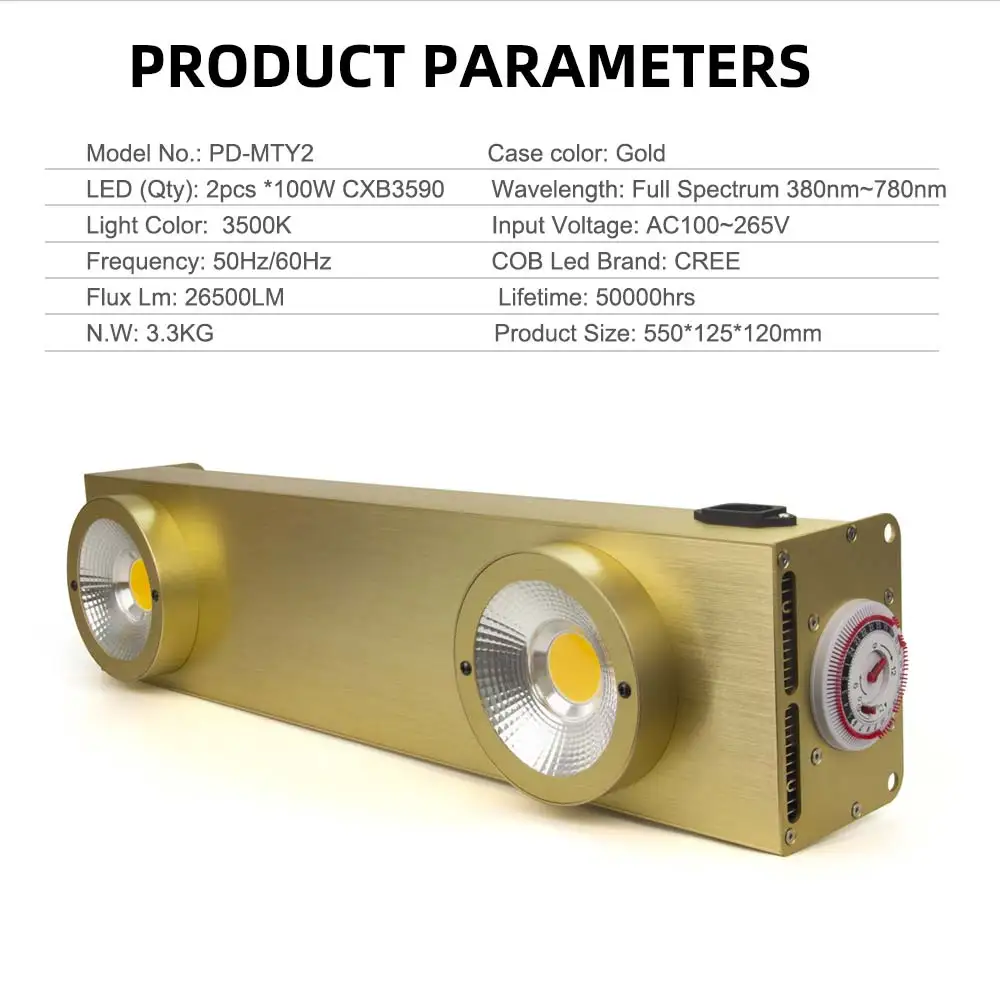 Product Name: Dimmable CREE CXB3590 200W 3500K COB LED Grow Light Full Spectrum With Timer For Indoor Greenhouse Plants Flowers All Stage Grow